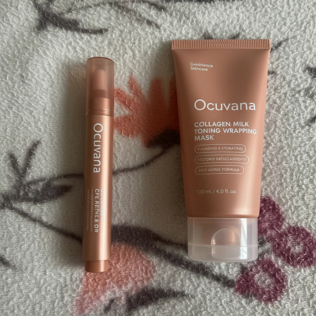 The Ocuvana Collagen Duo works beneath the surface, hydrating and strengthening the skin barrier while boosting collagen production.
